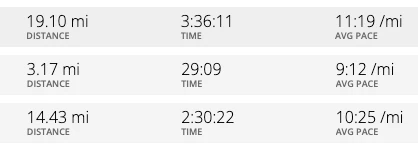 At least I was able to get 2 longer runs in… This isn’t the ideal training schedule, I’d rather have trained 4 days instead of 3 with the same total weekly mileage. But alas, as I’ve mentioned, life gets in the way sometimes…